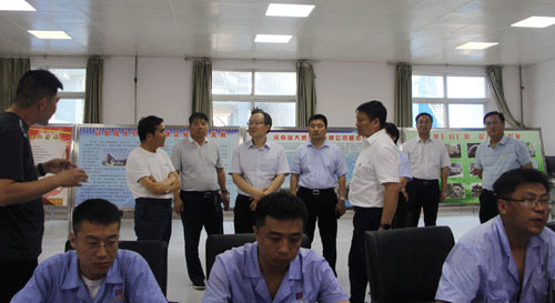 李建民一行深入大地集团河南荣欣新能源有限公司光伏发电施工现场、孔庄矿山、大地公司中央控制室,听取了集团领导关于企业生产经营等方面的情况汇报,实地查看光伏发电项目的建设进度及矿山综合治理情况。