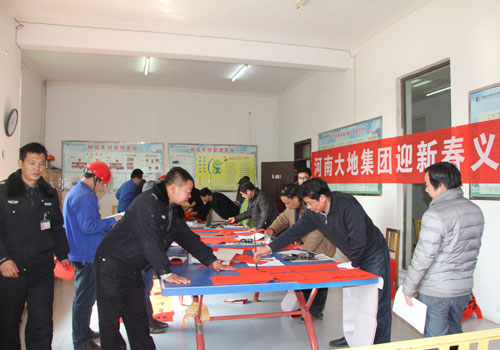 (本报讯)210日上午,农历甲午年腊月二十二,大地公司中控办公楼一楼烧成车间会议室内,翰墨飘香,欢声笑语,大地集团在这里隆重举行迎新春义写春联活动。