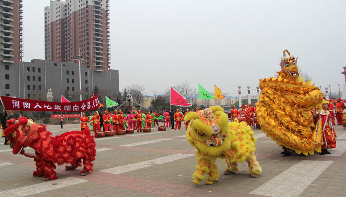 演出当天,春寒料峭,县城新世纪广场人头攒动、激情飞扬。在新世纪广场世纪柱北侧,乐竞官方网页版向全县人民问好巨大红色条幅格外引人注目。表演现场,龙腾狮舞,锣鼓喧天,巨龙摇头摆尾,双狮追逐嬉戏,盘鼓高亢有力,观众将演出现场围拢得水泄不通,一个个拿出手机拍照录像…… 最后,由双狮引路,巨龙表演进入公司中控楼向大地公司拜年祈福、期盼羊年大吉! ![]() ![]()