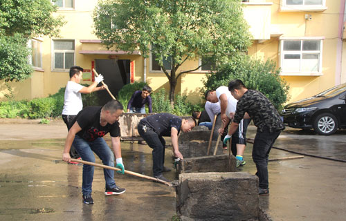 10月16日上午,利用周日的闲暇时间,集团司机班司机同志们自发组织进行义务劳动,对生活区下水道进行冲刷清淤,疏通治理,为共创美好大地作出积极的努力!