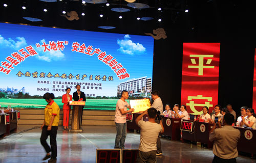 6月30日晚,由县政府安委会、县安监局主办,大地集团协办的宝丰县第五届“大地杯”安全生产电视知识竞赛在县广电局演艺中心举行。本届知识竞赛共有28支代表队报名参赛。经过预赛、决赛的激烈角逐,伊犁公司荣获一等奖。 卫计委、京宝焦化代表队分获二等奖。