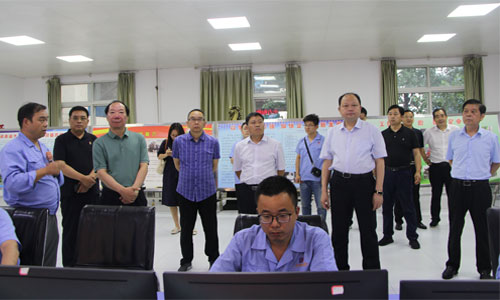 李鹏举一行实地参观了大地公司中控室,公司常务副总赵国铎介绍了整个生产线的技术装备、工艺流程、脱硝改造、固废利用等方面的情况。集团总裁王国杰就集团三大主业板块的基本情况、人力资源以及疫情以来的用工和稳岗就业情况作了详细汇报,李鹏举关切地询问疫情对企业生产经营的影响。他对集团在整个疫情期间不减员,不降薪、而且乘势而上,通过新上项目而新增大量就业岗位表示赞赏。他希望企业要继续创新机制,深化改革,在保障职工合法权益、构建和谐劳动关系、维护社会稳定方面再上新台阶。