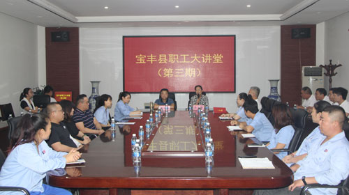 8月28日下午,在县总工会党组成员、副主席赵素敏的带领下,县总工会一行走进大地集团开展职工大讲堂宣讲活动。活动邀请县总工会特聘法律顾问赵军涛、国家二级心理咨询师刘雨凝前来授课。