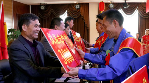 集团领导张怀平为获奖者颁奖 红花映笑脸,掌声送劳模!3月27日上午,大地水泥公司北大门彩旗招展,气球高悬,三楼会议室内鲜花怒放,掌声雷动,乐竞官方网页版2020年总结表彰暨2021年工作部署动员大会在这里隆重召开。来自各分公司的部分干部职工、受表彰的先进个人、先进集体及广大优秀经销商、领创地产、贾湖酒业的干部职工代表参加了会议。集团领导张怀平、张彪、王国杰、崔泉发等出席会议。