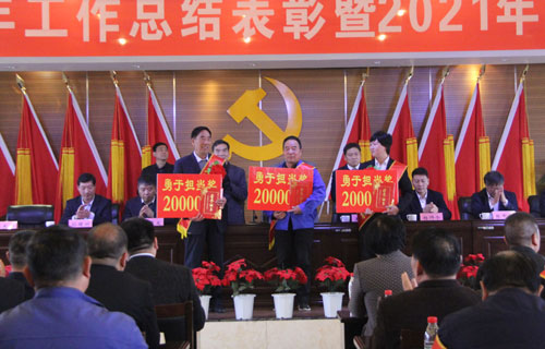 最后,董事长张彪作了重要讲话,他充分肯定了集团2020年在扎实做好疫情防控的形势下取得的优异成绩,客观分析了当前企业所面临的形势,并对建材、酒业、地产板块的发展理念和远景目标进行了展望,为广大员工鼓劲加油,提振士气。同时,提出了新的更高的要求。他强调:一、创新选人用人机制,打造优秀团队。以干成事为导向,加大技能培训、传帮带、师带徒三大举措,积极引进高等院校毕业生,推进人才梯队建设,为企业高速发展奠定坚实的人才基础。二、强化考核机制,改进考核制度。坚守言必信,行必果,用生命捍卫承诺的核心价值观,实现结果导向,年度目标量化,改变固有的考核制度,完善绩效考核方案,进行月考核、季考核、半年考核和年度考核,严格奖罚激励机制,完成各项生产指标。三、弘扬大地文化,提升企业活力。对企业文化进行重新梳理和升级,渗透到集团公司的各个层面,认真落实第一责任人制度,把不说不行的理由、只想可行的办法等文化理念贯穿于生产经营全过程。强化一把手考核,目标能否落地,工作能否干好,是各单位、各部门一把手不可推卸的责任。四、引领绿色发展,做到大地先行。要加大环保投资力度,积极引进先进的环保工艺、技术,达到环保绩效A级企业,引领国内同行业绿色发展水平。五、围绕客户需求,提升服务水平。树立客户至上理念,以产品质量为根本,将客户需求导向贯穿于市场、研发、销售、制造、服务等全流程,创新服务意识,让客户真正体会到放心、贴心、省心的全新服务。六、整合三大板块资源协同,提升集团整体发展质量。建材、酒业、地产三大板块要相互促进,优势互补,融合发展,形成独具特色的链条模式,增强企业的整体竞争力。七、创业难守业更难,牢记艰苦奋斗,实现二次创业。牢记老一代创业初心,创业艰苦。创业之初,大家不讲条件,不怕吃苦,一心一意干成事,干好事,才成就了大地集团今日的辉煌。成绩来之不易,集团上下要备加珍惜,更要以强烈的责任心、事业感,推动各个板块实现业绩大提升、新跨越。要有空杯心态,成绩只属于过去,跨越更需担当。新的一年要翻篇归零从头干,二次创业再出发,坚持创业精神,牢记艰苦奋斗,狠抓各项管理,反对铺张浪费,实现“大地速度”,全面完成集团的各项目标任务。