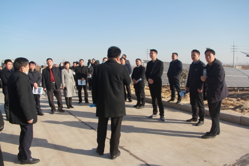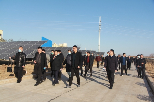 叶县长一行深入荣欣新能源光伏发电项目现场,实地察看项目的建设情况。集团总裁王国杰结合乡村振兴,重点介绍了项目的建设理念、投资规模、进度安排、发电运营等情况。辛集乡乡长赵辉介绍了项目的资源优势、区域优势及生态效益,就如何落实好“企业至上 项目为王”的服务理念进行了汇报。