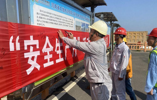 启动仪式上,矿山管理部副经理王永亮宣读了《河南省大地水泥有限公司所属矿山2023年“安全生产月”活动实施方案》,对活动进行了安排部署,并做动员讲话。矿山管理部副经理张宾宾宣布2023年度“安全生产月”活动正式启动,孔庄矿山负责人颜世统带领全体参会人员进行安全宣誓,并在安全宣传条幅上郑重签名,表达了践行安全承诺,履行安全职责,落实安全生产责任,有效防范化解重大安全风险,以高水平安全保障矿山高质量发展的决心和信心。