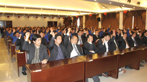 2012年4月6日上午,宝丰县第十四届人大代表发改口二选区选举大会在大地公司会议室隆重举行。大地集团董事长张彪、总裁崔泉发等集团领导及县选区督导员出席了大会,集团各单位近300人参加了主会场选举,会议由集团党委副书记、副总裁王福文主持。