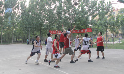 517日下午,大地集团篮球场上热闹非凡,欢呼声、加油声、掌声不断响起。集团2013年夏季职工篮球联赛正在激烈进行。