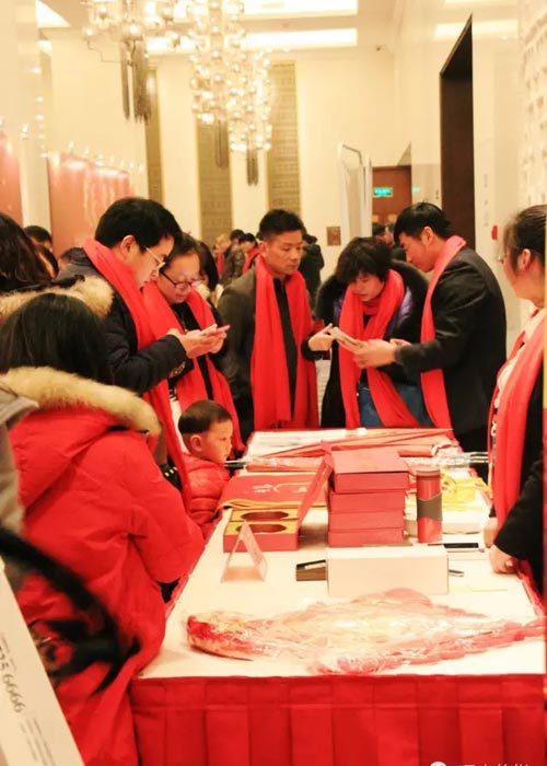 寒冷的天气并未影响大家相聚的热情,下午不到5点,现场签到处已门庭若市,在工作人员贴心引导下,大家有序进行微信签到,进入答谢会现场。晚上6点左右,一段阐述大地集团恢宏实力和过往数载坚实历程的宣传短片拉开了本次活动的序幕。大地集团董事长张彪、贾湖酒业总经理赵书民、领创置业的执行董事殷红叶分别发表了热情洋溢的致辞。