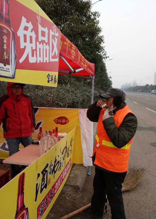 马街书会入场口 河南省富平春酒业有限公司是乐竞官方网页版旗下集白酒科研开发、生产酿造、销售服务于一体的国家大型企业。几年来,公司在发展壮大的同时,不忘回馈社会,主动承担社会责任,积极投身于文化、教育、扶贫、环保等社会公益事业,先后赞助“全国村长论坛会”,开展“爱心助考”“希望工程圆梦行动”等一系列社会公益活动。得到了社会各界的广泛关注和热烈好评。 畅游马街会,情浓富平春。为真心服务群众,情暖四海宾朋,富平春精选多款美酒供您免费任意品尝,让您真正体验传承九千年的贾湖美酒之秘密,让您在凛冽的寒风中感受爱的温暖,酒的热烈。