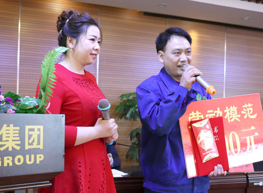 劳动模范代表周敬岗接受主持人采访 会上,集团董事长、总裁分别与各分公司负责人层层签订了《2018年度工作目标责任书》,并对先进个人代表、先进集体代表、劳动模范、优秀经销商进行了表彰奖励。各分公司负责人就如何做好2018年的工作作了表态发言。先进典型代表分别发表了获奖感言。大家纷纷表示,要以此次会议为契机,认真领会会议精神,并落实到实际工作中去,忠诚履职,真抓实干,为全面完成2018年度的各项目标任务而努力奋斗!