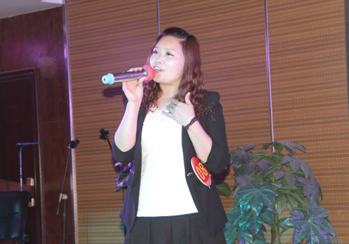 荣获一等奖的郭会娟正在激情高歌