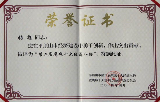 集团董事长张彪被授予第二届鹰城十大经济人物