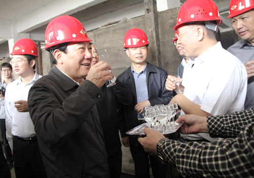 1015日,漯河市委副书记、市长曹存正在集团董事长张彪及舞阳县委县政府主要领导的陪同下到富平春公司调研。 曹市长一行先后来到施工现场、勾兑车间,参观了综合车间、地下酒库等地,每到一处,都详细了解企业的建设情况、发展规划及生产经营状况。并听取了公司领导关于酒文化馆、酒银行、酒博物馆以及未来几年的发展战略的汇报。